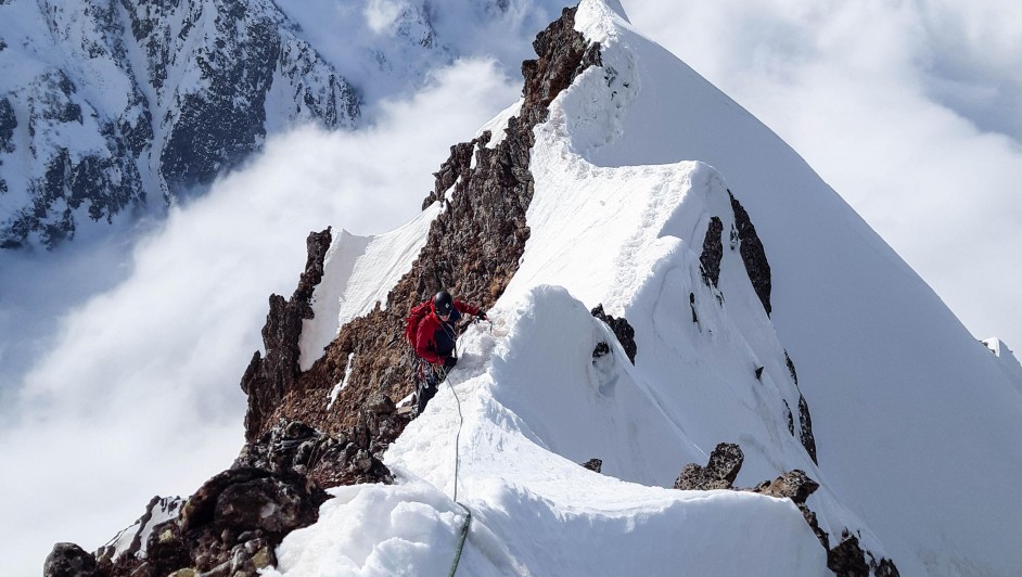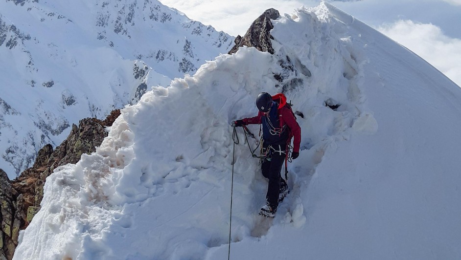 Op de Rothorngrat richting de top van de Zinalrothorn, Zwitserland.