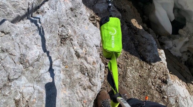 Daar gaan we dan, de prachtige via ferrata/klettersteig van de Zugspitze bedwingen. Aangekomen bij de start kan ik met het grootste gemak de set bevestigen aan mijn harnas. Met het aantrekken van het harnas, het opzetten van de helm en het bevestigen van de set ben je binnen no-time klaar door de handige lus die aan de set zit. Je steekt deze lus door de lus van je harnas, haalt de hele set er doorheen, trekt het geheel aan en klaar is Kees.