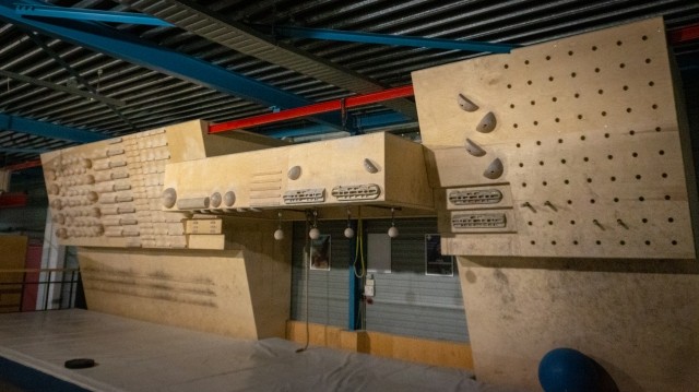 Na gratis geparkeerd te hebben voor de deur gaan we naar binnen. Wat direct opvalt is de grootsheid van de hal. Het is ruim en licht met een mooie bar en balie waar je je aan kunt melden. De hal beschikt niet alleen over veel boulderwanden, er zijn ook twee trainingsarea’s aanwezig. De ene is vooral gericht op klimspecifieke training. Het zal je dan ook niet verbazen dat je hier onder anderen de welbekende beastmakers en andere attributen terug vindt.