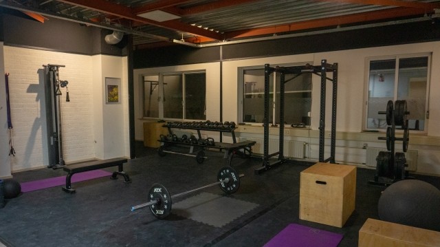 De andere area is ingericht met materialen voor algemene krachttraining. Denk hierbij aan een barbell met schijven, pull up stang, dip-station, kettlebells en een dumbellrack. En, altijd fijn om te hebben, een pulley-station.
