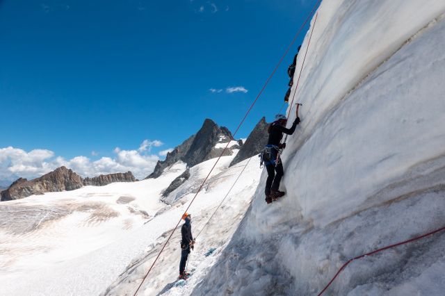 Om maar gelijk met de deur in huis te vallen: Ik vind de Gully echt een topitem. Ik heb nog nooit een pickel gehad die zo licht en kort is en tegelijkertijd zo goed klimt in hard ijs of steile sneeuw. Perfecte performance-to-weight ratio dus. De meeste lichte pickels die ik ken zijn niet in staat om door te dringen in hard ijs als je ermee slaat. Ze stuiteren gewoon weer terug. Met de Gully is dit echt anders: je kan dankzij de stalen punt in verrassend moeilijk terrein klimmen.