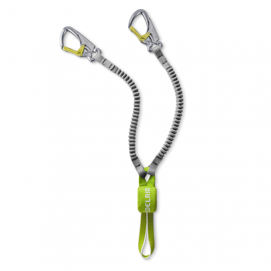 Een fout die nog wel eens gemaakt wordt is dat een gebruiker slecht één karabiner inklikt bij een eenvoudig stuk. LET OP: doe dit nooit! Zorg altijd dat beide karabiners verankerd zijn. Bij incorrect gebruik (slechts één karabiner bevestigen) zal echter deze klettersteigset de val nog steeds op een juiste manier kunnen opvangen. Dit komt door de innovatieve scheurband die per elastische arm geborgd zit.