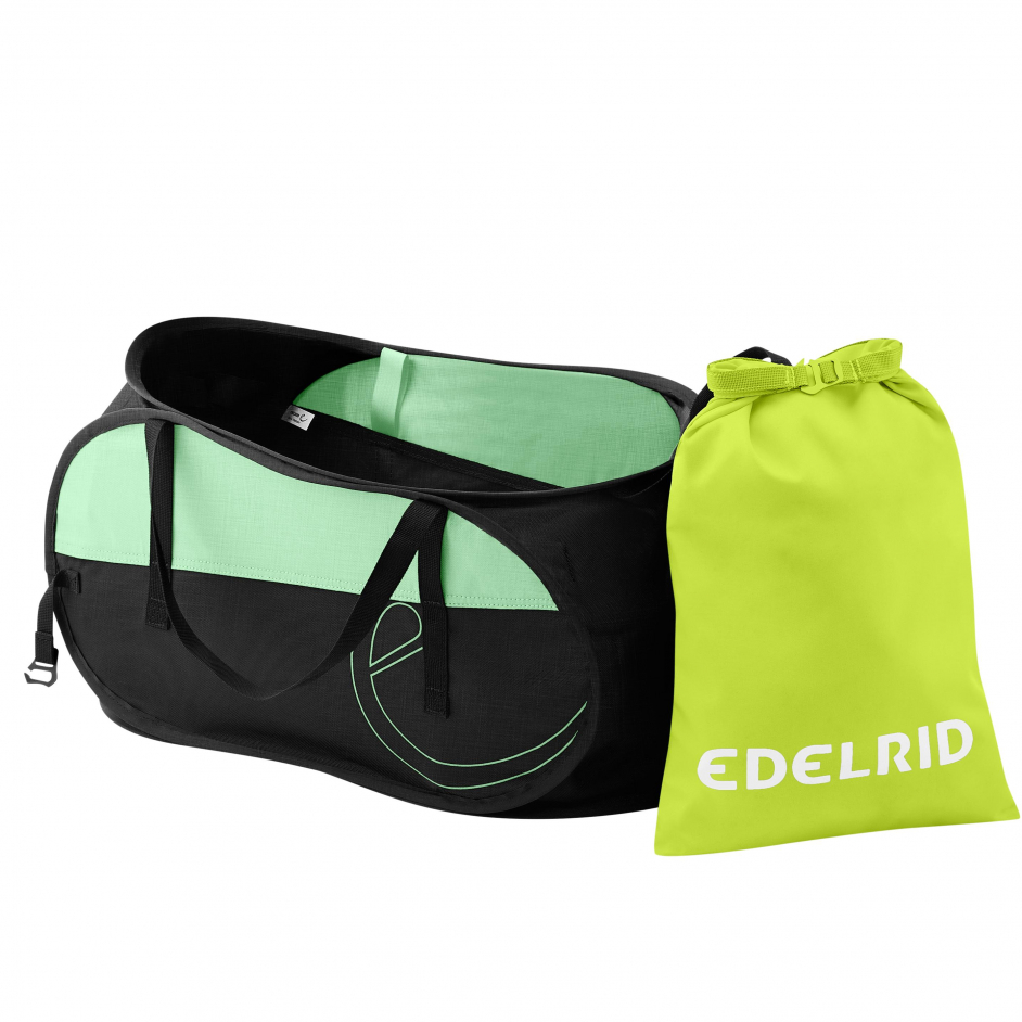De Spring Bag van Edelrid kan enorm compact worden opgevouwen. Bij de tas wordt een opbergzakje meegeleverd waar deze eenvoudig en snel vervoerd kan worden.
