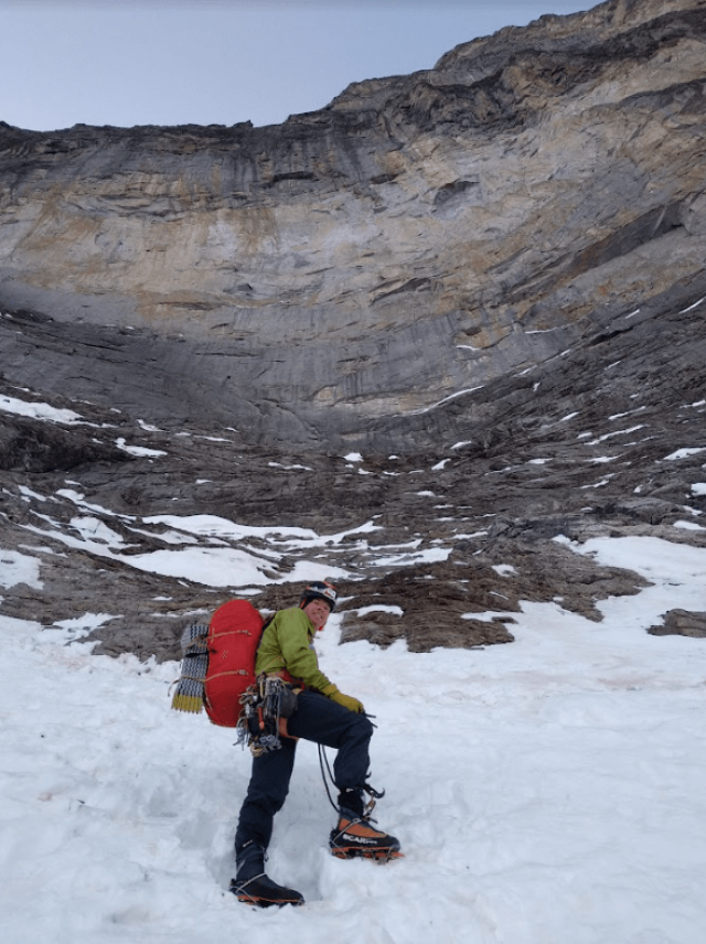 Bas onderin de Eiger Noordwand met de vorige generatie Scarpa Phantom Tech.