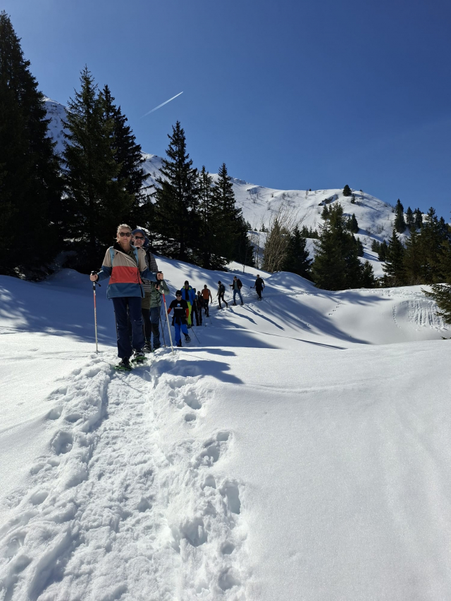 Op dag drie zochten we de hoogte op in skigebied Les 7 Laux. De omstandigheden waren top. Een deel van het team ging de piste op met ski’s of snowboard, terwijl de rest koos voor een sneeuwschoenwandeling met gids door de verse sneeuw.